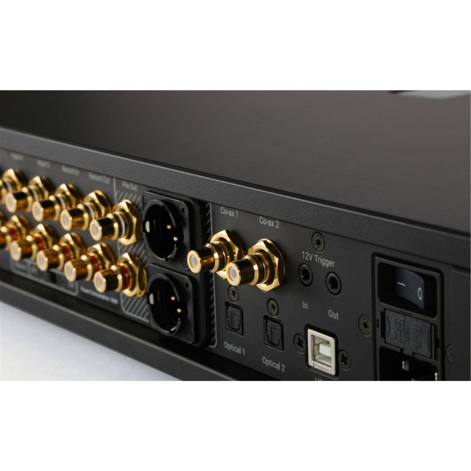 Unlike many pre-amplifiers that treat headphone listening as an afterthought, the Mercury features a dedicated, discrete headphone amplifier. It employs the same symmetrical common base driver stage as the main output, effectively functioning as a miniature power amplifier. This design provides the high voltage and current drive necessary to control both low and high-impedance headphones with authority, delivering a personal listening experience that rivals dedicated standalone units.