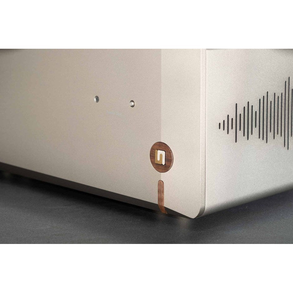 - 15mm Machined Aluminum Front Panel: CNC-machined from a solid aluminum block with wooden inserts and the Unison Research logo serving as the power button.